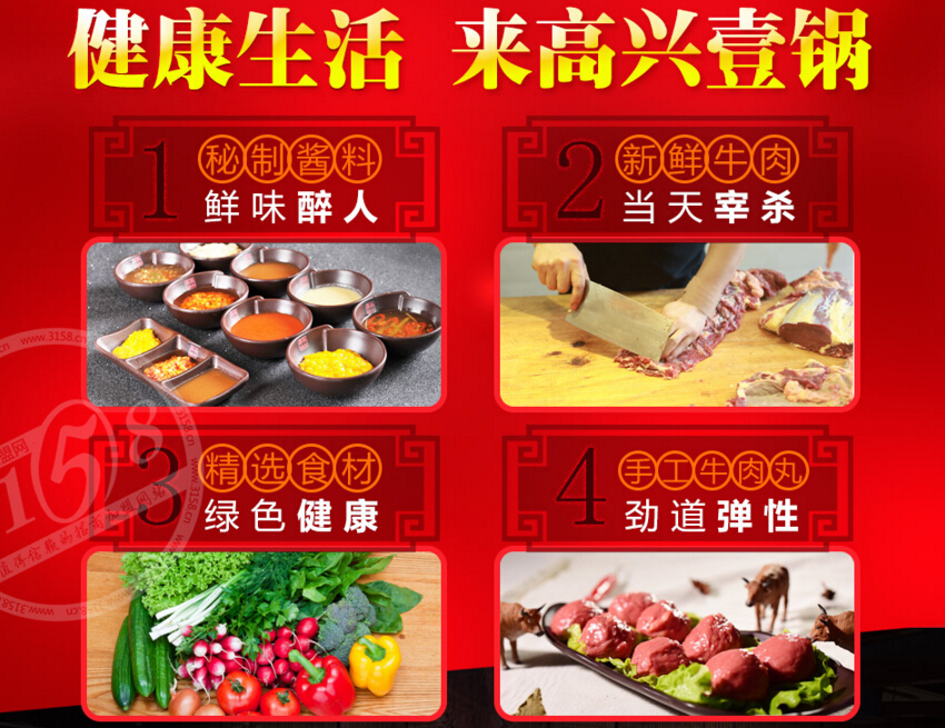 高兴壹锅以鲜牛肉为主要食材,配以新鲜绿色有机蔬菜及其他精品肉类,为食客提供充足的热量和营养。
