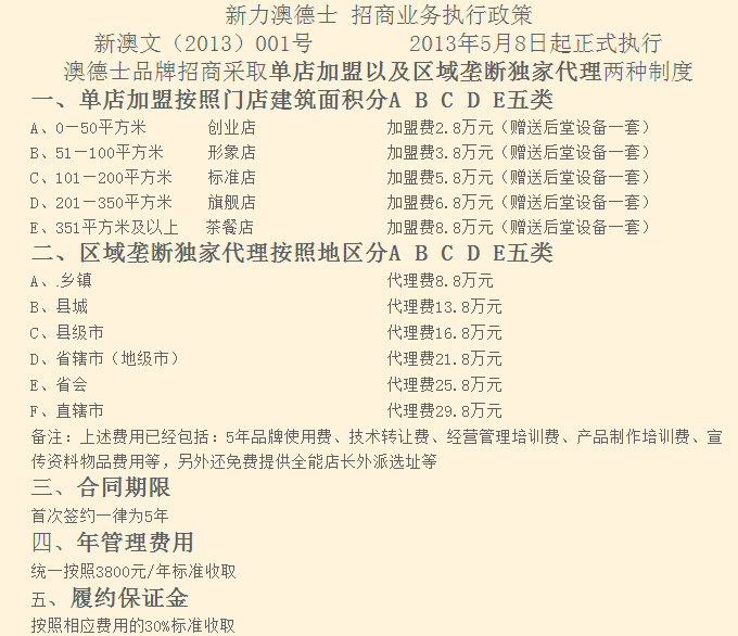 6、具备一定的资金实力,能够满足加盟店的启动资金要求,严格按照协议缴纳加盟费及商标使用费;